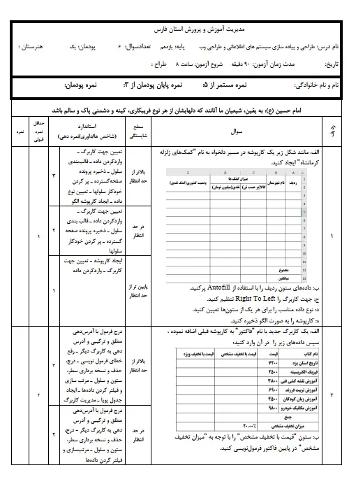 نمونه سوال پودمان اول کتاب پیاده سازی سیستم های اطلاعاتی و طراحی وب
