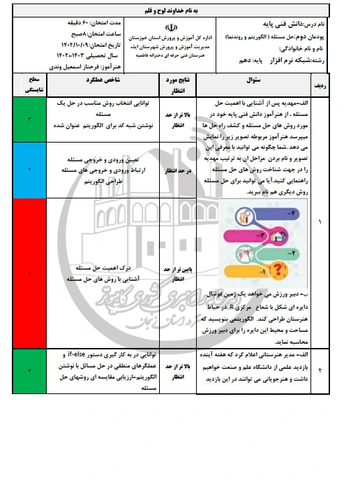 نمونه سوال پودمان دوم کتاب دانش فنی پایه(دهم)