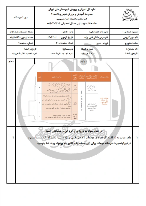 نمونه سوال پودمان اول و دوم کتاب دانش فنی پایه(دهم)
